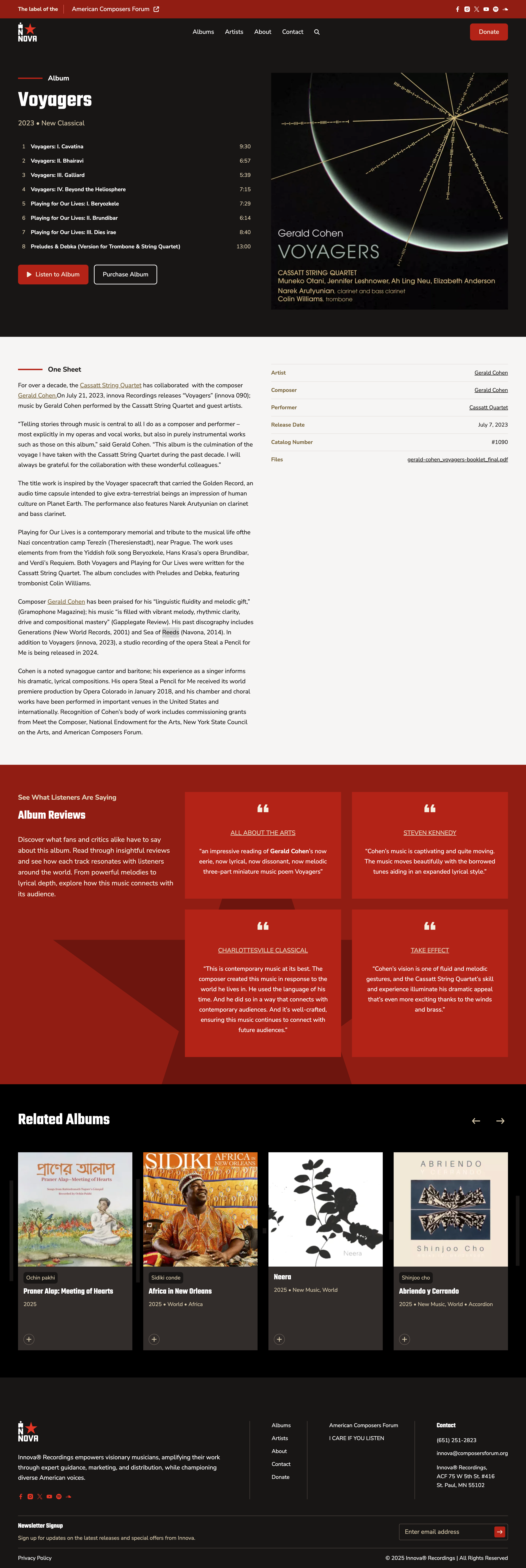 Innova’s Drupal site was difficult to manage and out of step with their publishing needs. As part of a larger initiative by American Composers Forum, we migrated Innova, American Composers Forum, and I Care If You Listen into a unified WordPress multisite setup. This allowed the organization to manage three distinct brands from a shared backend—simplifying long-term maintenance while preserving flexibility.